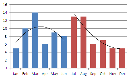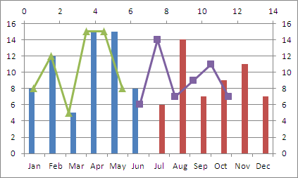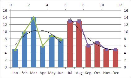 The challenge: A column chart needs to show two sets of columns and have a trendline for each set of columns.