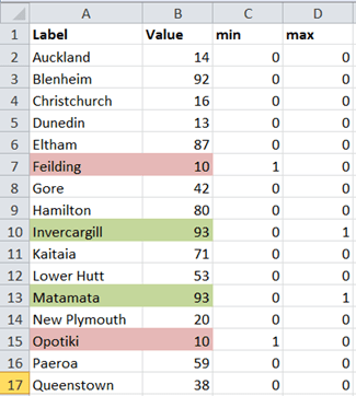 So let’s look at how to use a background fill for the highest and lowest data points. This can be achieved by plotting a column chart on the secondary axis. First, we need to prepare the data.