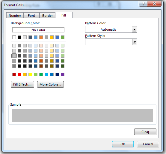 … and open the Format Cells dialog on the Border tab. Select a light grey colour from the colour drop-down and after that click the Inside and Outline boxes.